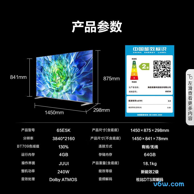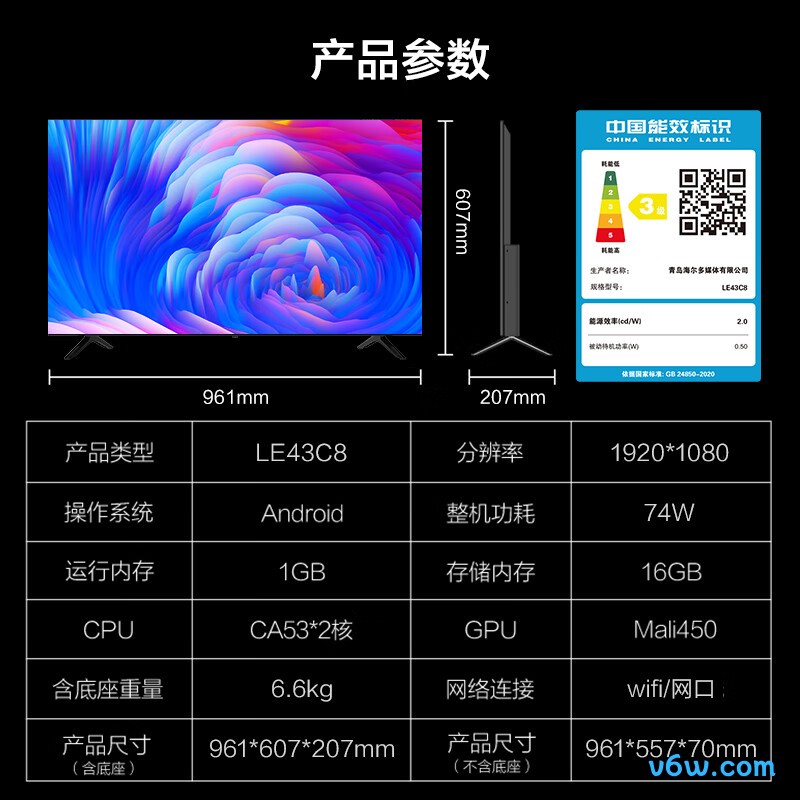 你好,我想问一下海信50V1KR电视机的长宽是多少?