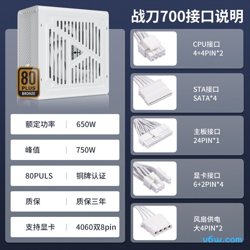 先马平头哥E800电脑电源是否有PCI-E接口?有几个?