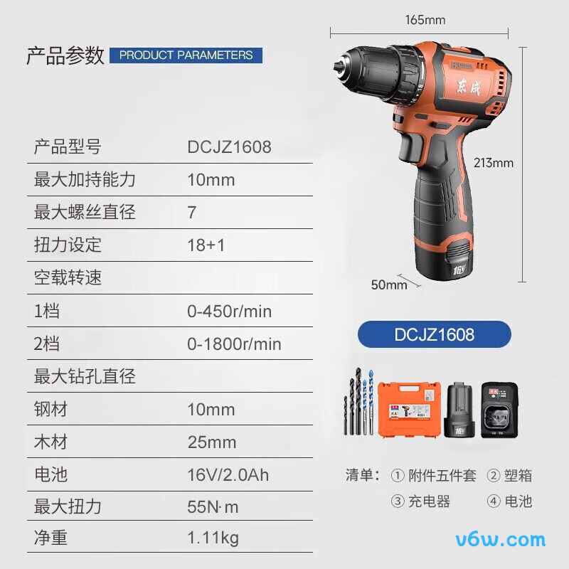 扭矩:50N·m 电池容量:2Ah 电源方式:锂电 额定电压:12V 打孔范围:木材钻孔,维修组装,塑料钻孔,瓷砖钻孔,钢板钻孔 参考价格:¥305