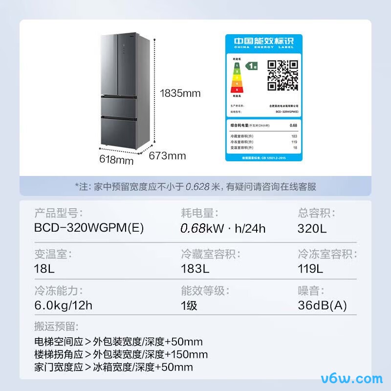 美的BCD-320WGPM(E)冰箱