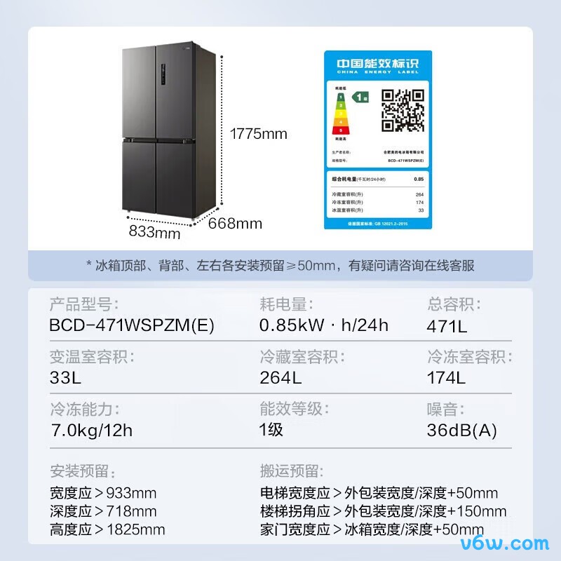 美的BCD-471WSPZM(E)冰箱