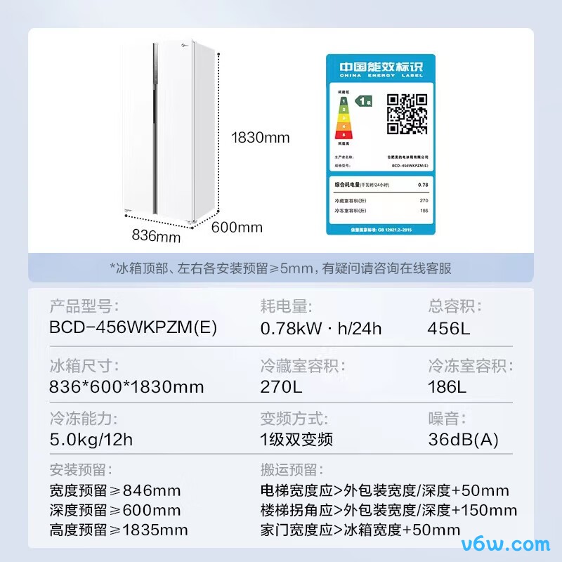 美的BCD-456WKPZM(E)冰箱